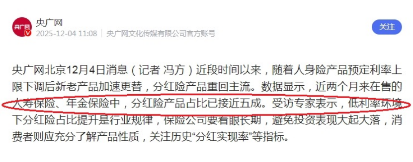 分红险是当前储蓄型保险的主力产品,据央广网报道,2025年10月以后,在售的人寿保险产品中,分红险产品占比接近50%。