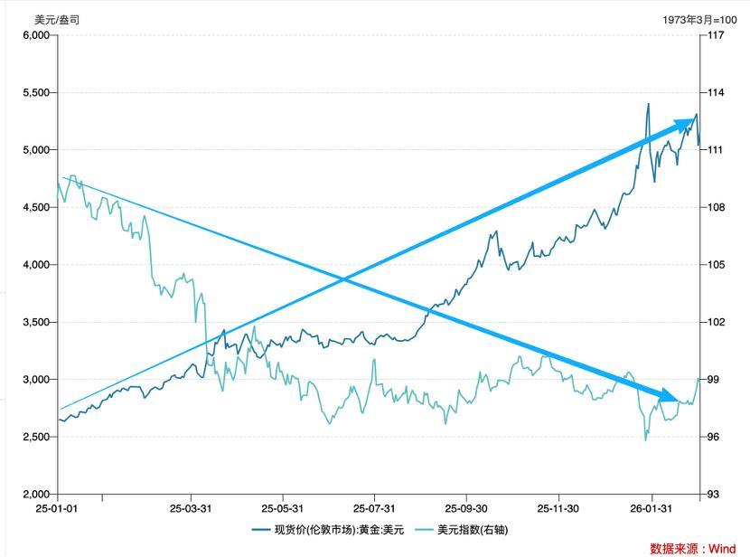 其后2025年12月开始石油价格开始缓慢上行,根据前文我们分析框架,美元在此时开始走出谷底,美债的投资价值开始重新被发现,也就在此时黄金价格亦开始出现波动。