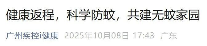 10月8日17时许,广州疾控发文《健康返程,科学防蚊,共建无蚊家园》。