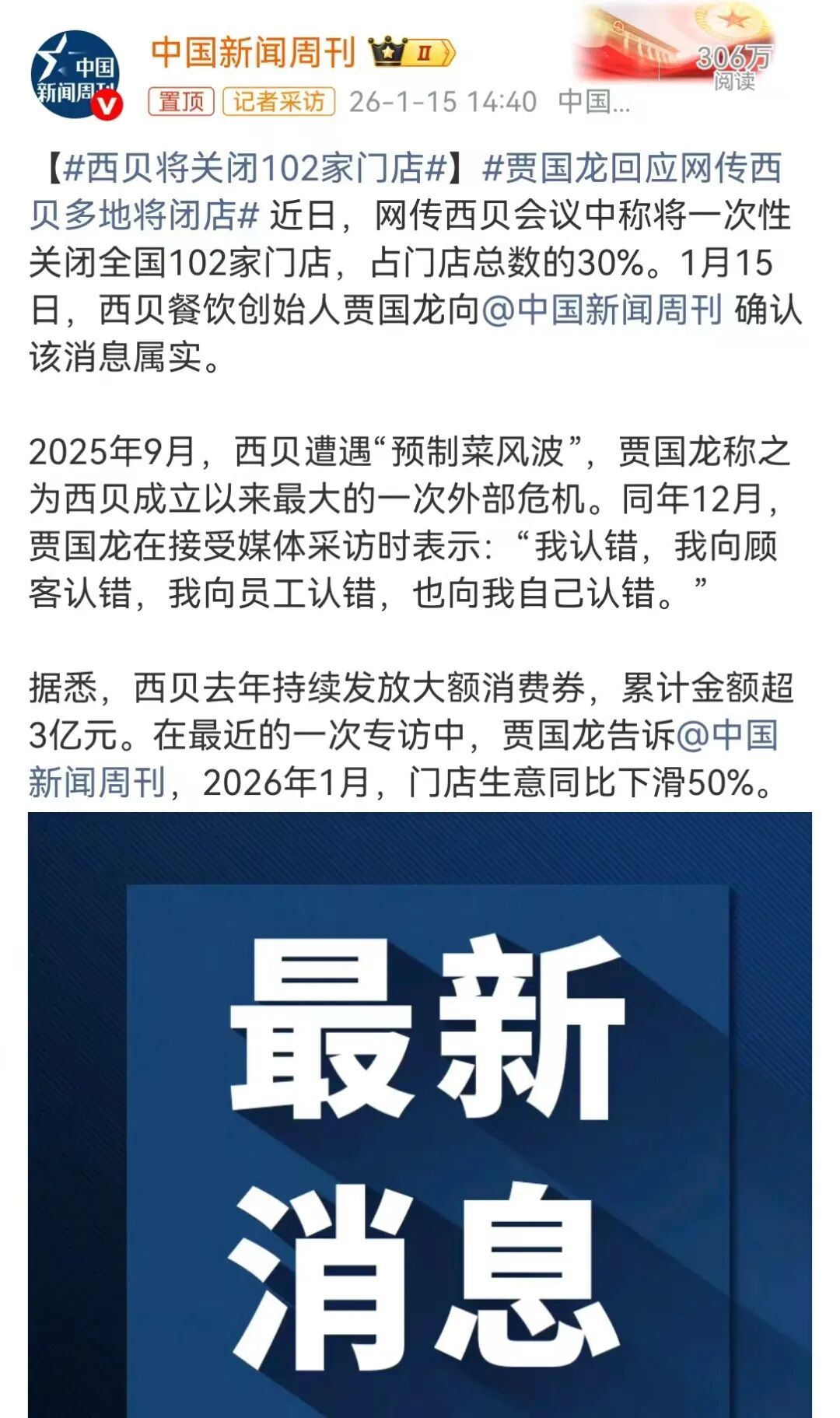 可即便如此,西贝还是付出了惨痛的代价。这场风波给西贝上了最深刻的一课。