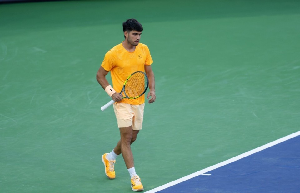 首盘比赛阿尔卡拉斯在首个发球局实现破发,随后他在第3局再破鲁德发球局,一波连赢4局后4-0领先。第7局在鲁德首盘非保不可的发球局当中,阿尔卡拉斯第3次完成破发,6-1赢下了第一盘比赛的胜利。