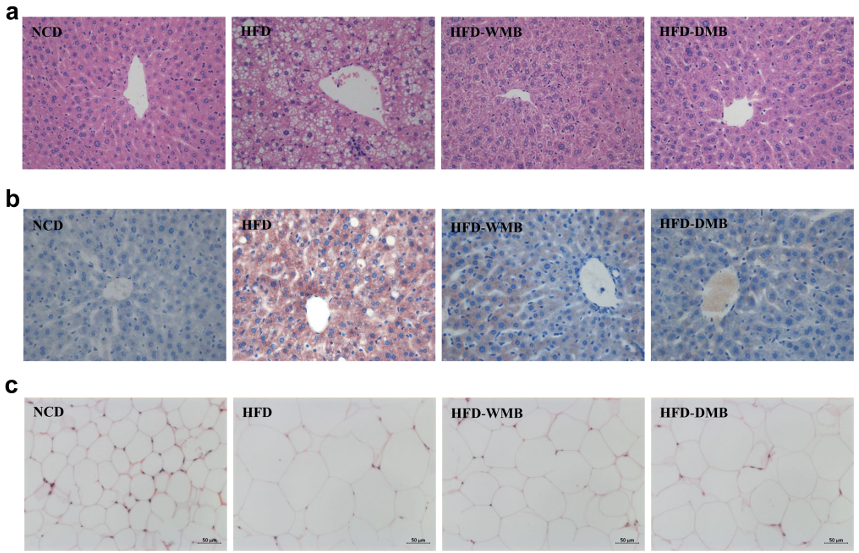 脂肪减少:全绿豆组小鼠体内的脂肪堆积明显减少,尤其是腹部脂肪(附睾脂肪、肾周脂肪等),脂肪细胞的大小也显著缩小。